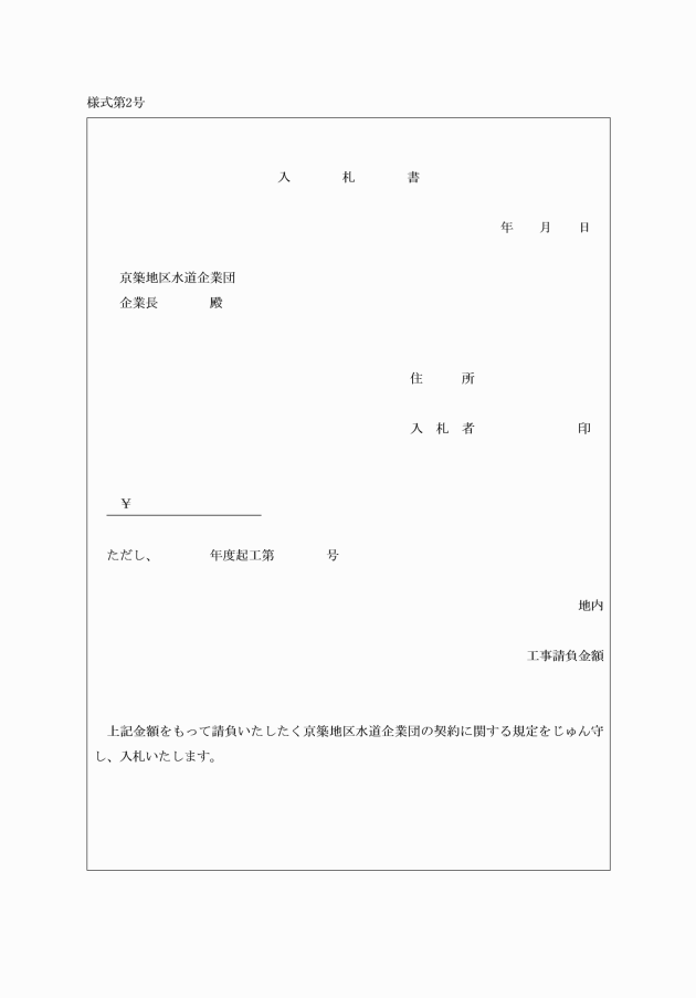第11条 一般競争入札に参加しようとするものは、入札書(様式第2号)に必要な事項を記入し、記名押印のうえ、封書にして所定の時間内に入札しなければならない。